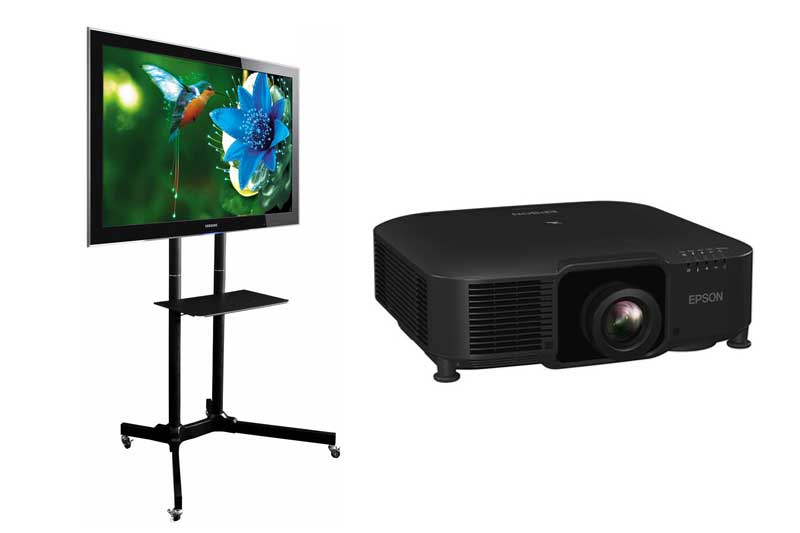 Tvs de hasta 65' con soporte regulable y proyectores de hasta 15000 lum con pantallas gigantes